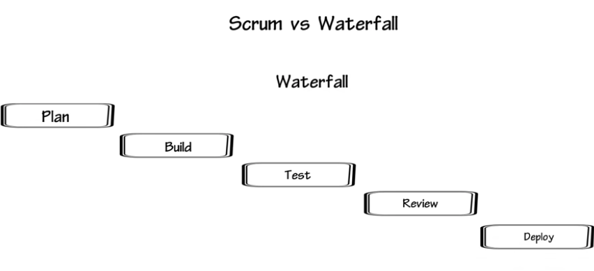 Water fall - lengthy process, planning, building, testing, reviewing and deploying ... wrong product to a changing market. 1. Planning should be completed; 2.sent/bounce back, time consuming;