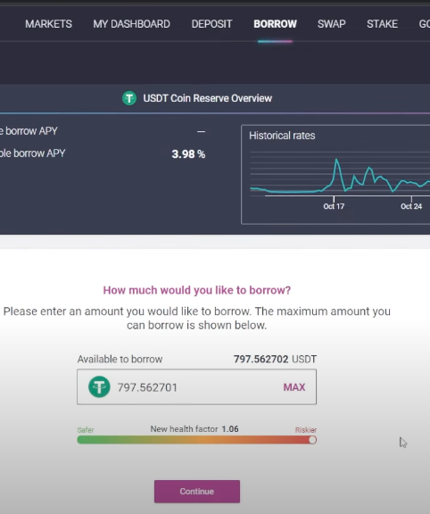 4. 再进AAVE去borrow Thether;