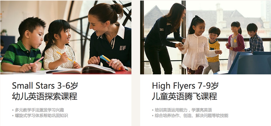 EF High Flyers儿童英语培训腾飞课程(7-9岁)采用个性化的教材与资料,结合独特的Efekta™ 左右脑学习法,着重建立孩子开口说英语的自信与口语技能,同时帮助孩子提高学校英语成绩。